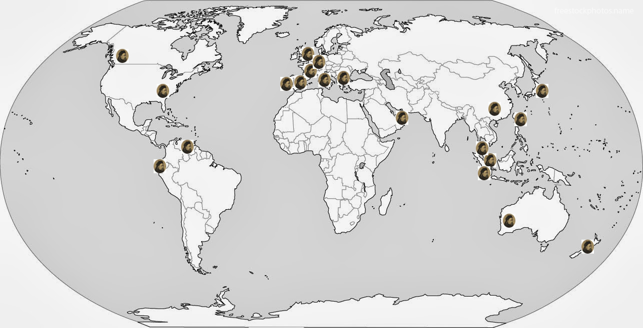LOCALISATION DES DESCENDANTS SPLINGAERD (en vie) DANS LE MONDE